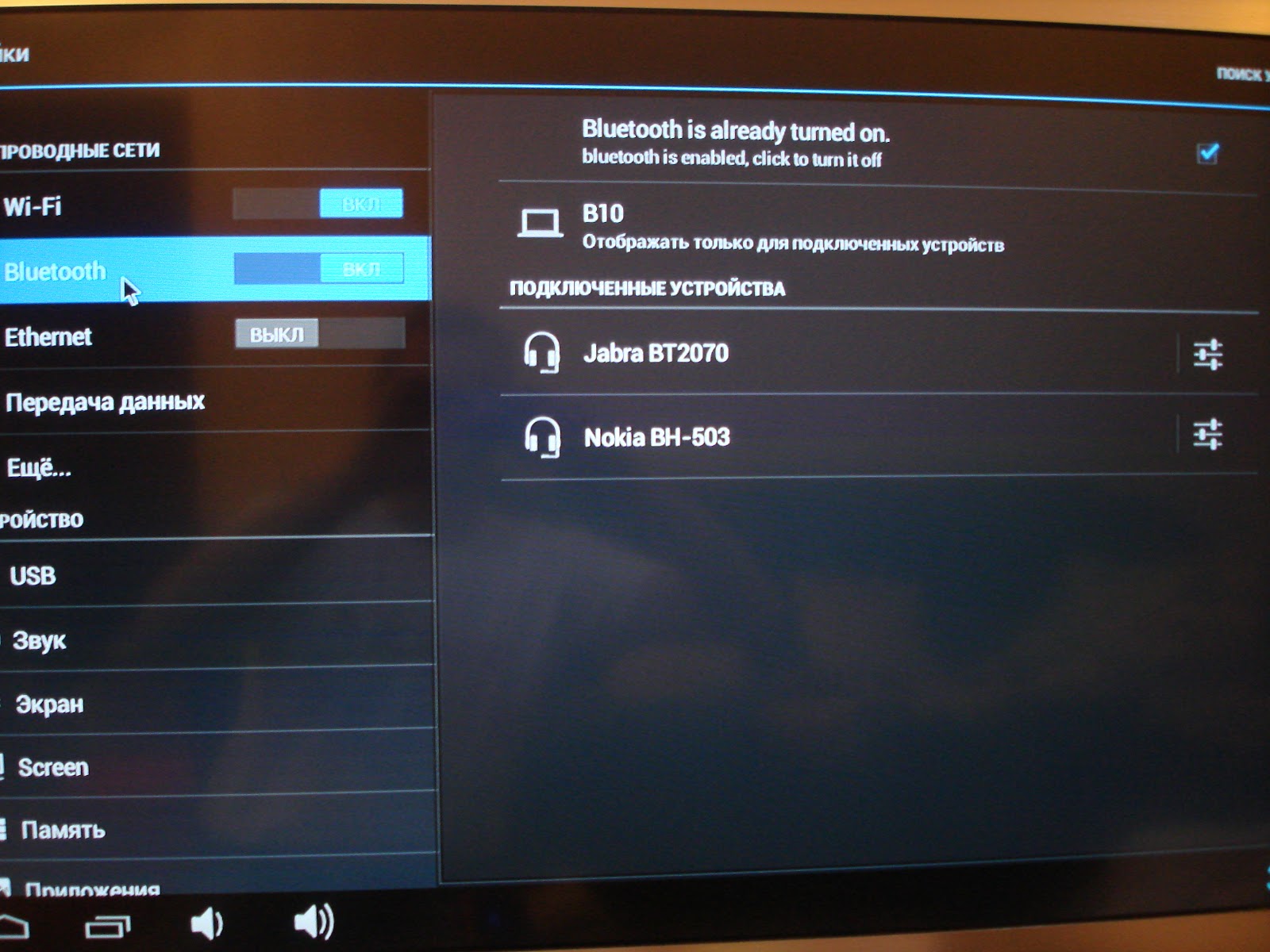 Без проблем подключилась стереогарнитура Nokia BH503, поддерживающая A2DP. Музыку и фильмы можно слушать не мешая домашним, когда они еще или уже спят.
