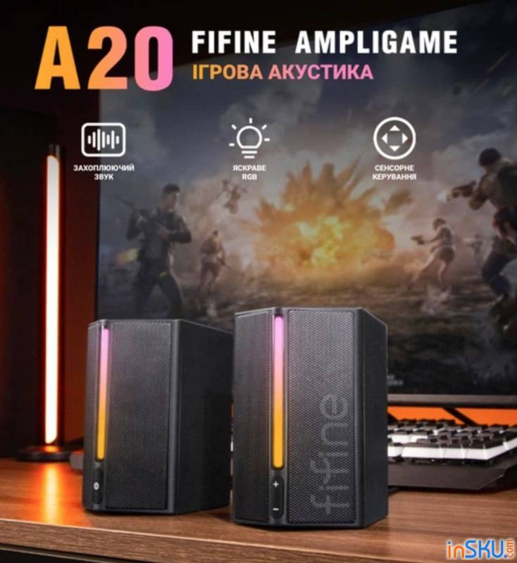 Когда долго играешь или работаешь за компьютером, даже самые лёгкие наушники начинают утомлять. Давление на голову, усталость слуха, ощущение «закрытого» звука — всё это знакомо многим. Именно в такие моменты начинаешь смотреть в сторону компактной настольной акустики. Fifine A20 — как раз из этой категории: небольшая 2.0-система, ориентированная на геймеров и тех, кто проводит много времени за ПК.
