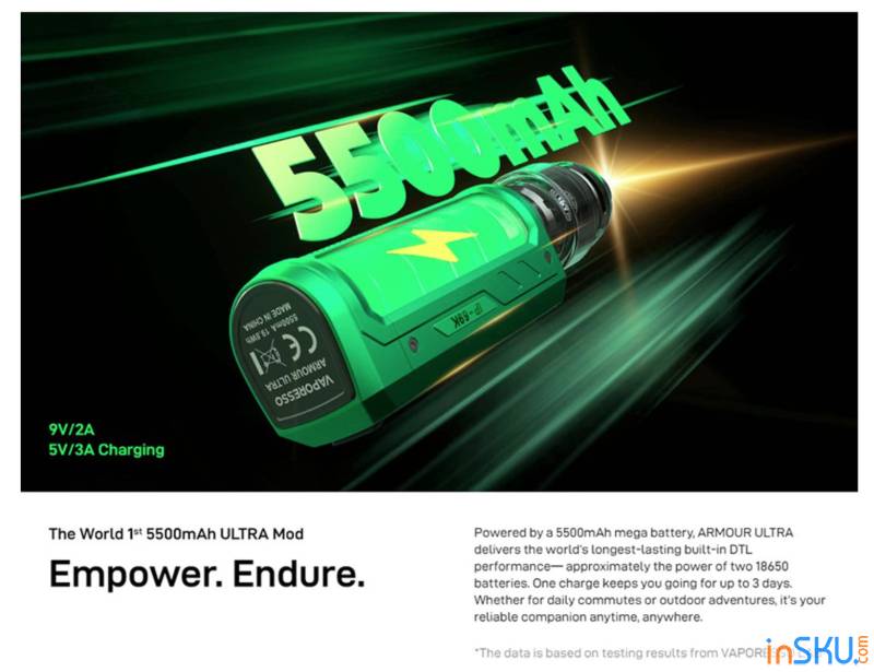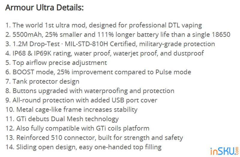 Обзор компактного и защищенного сетапа Vaporesso Armour Ultra Kit. Внутри защищенного по старндартам IP69K и MIL-STD-810H корпуса встроенный аккумулятор на 5000 mAh, который еще умеет заряжаться через тайп-с по быстрому стандарту QC. А внешне у нас простенький бак-необслужка с распространенными койлами.