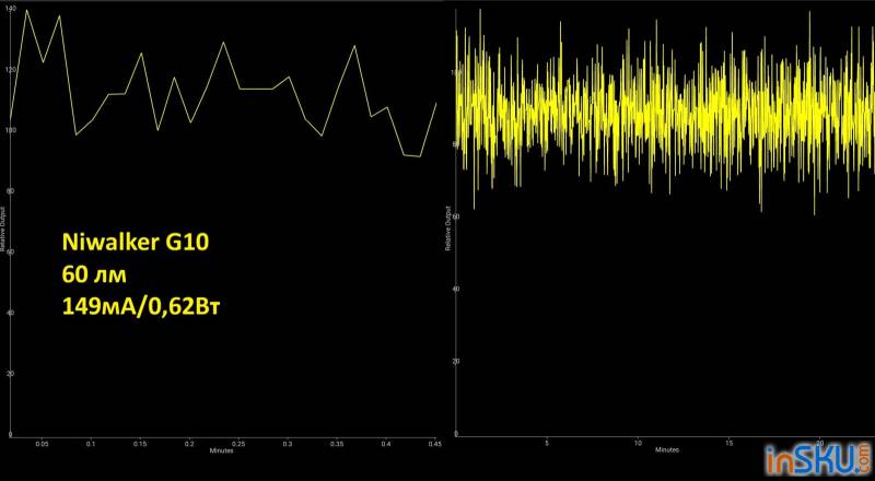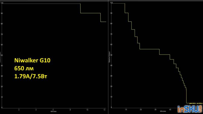 Стабильность работы во время разряда типична для литий-ионных устройств: яркость постепенно снижается по мере падения напряжения, либо электроника ограничивает мощность для сохранения стабильности. Резких отключений без предупреждения обычно не происходит, но при низком уровне заряда максимальный режим может работать менее стабильно.