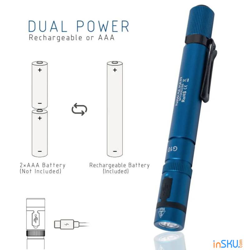 Видео обзор фонаря Niwalker G10 ПИТАНИЕ Niwalker G10, АВТОНОМНОСТЬ И ЗАРЯДКАФормат Niwalker G10 предполагает встроенный перезаряжаемый источник питания. Это сразу выделяет модель среди классических penlight-фонарей на батарейках AAA или AA. Отсутствие одноразовых элементов питания — очевидный плюс: не нужно постоянно покупать батарейки, снижается эксплуатационная стоимость, меньше отходов.