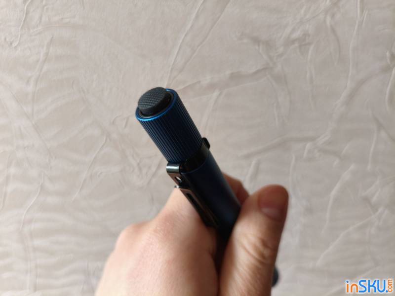 Корпус выполнен из алюминиевого сплава. Для фонаря такого класса это ожидаемое решение, но важно, что металл действительно ощущается прочным. Анодирование аккуратное, поверхность устойчива к мелким царапинам. В руке фонарь не кажется игрушечным, несмотря на компактность. Вес умеренный — он не утяжеляет карман, но при этом ощущается как полноценный инструмент.