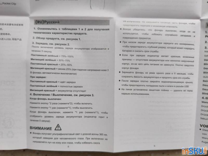 В целом конструкция Sofirn SR15 UV выглядит продуманной и практичной. Здесь нет лишних сложных элементов, но присутствуют все функции, которые действительно важны для рабочего ультрафиолетового фонаря.