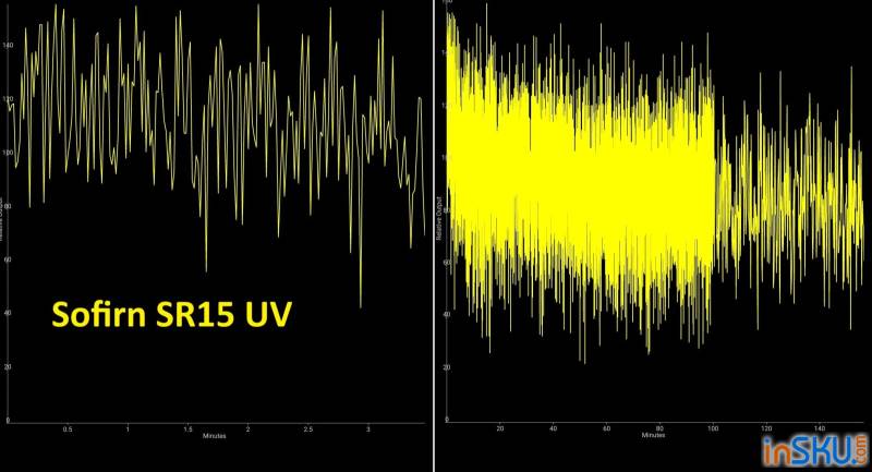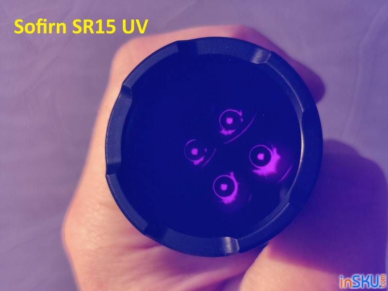 Мощность ультрафиолетового излучения заявлена на уровне около 10–12 ватт, что для компактного фонаря является довольно серьёзным показателем. Благодаря этому SR15 способен вызывать яркую флуоресценцию у различных веществ и материалов. Это может быть полезно для проверки банкнот, поиска следов биологических жидкостей, обнаружения трещин в материалах, проверки минералов или даже поиска скорпионов в некоторых регионах.